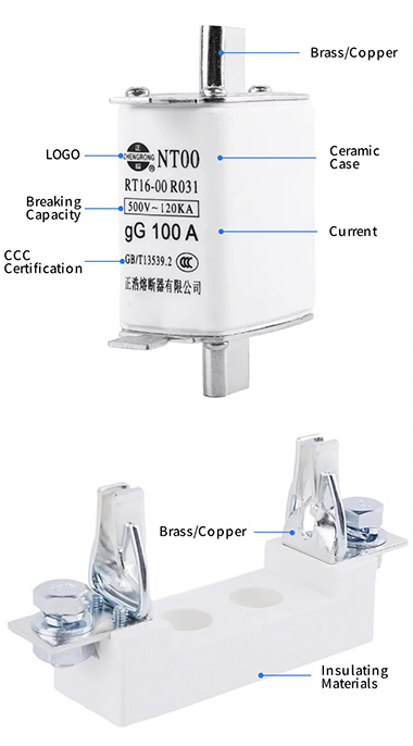 Customized low-voltage NT00 AC 160A 500/690V high breaking ceramic blade holder
