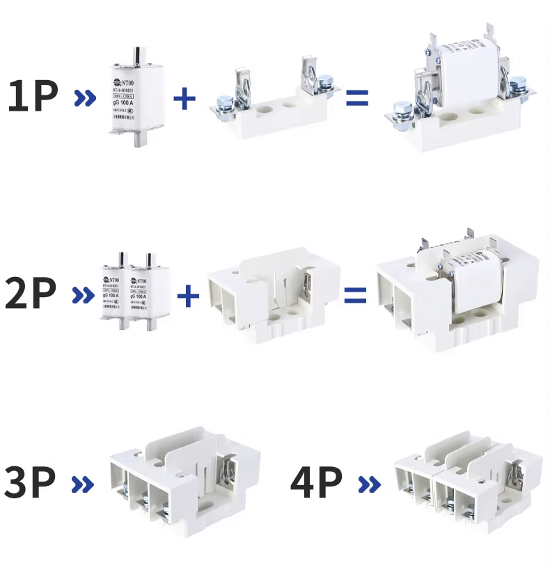 Customized low-voltage NT00 AC 160A 500/690V high breaking blade fuse holder is engineered for safe and effective circuit protection in industrial and commercial applications. ຕົວຍຶດນີ້ຖືກປັບແຕ່ງເພື່ອຮອງຮັບຟິວແຜ່ນໃບ NT00, ຮັບປະກັນການຕິດຕັ້ງທີ່ປອດໄພແລະການປະຕິບັດທີ່ເຊື່ອຖືໄດ້.
