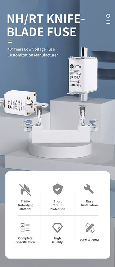 ມີຄວາມອາດສາມາດແຕກຫັກສູງ, Customized low-voltage NT00 AC 160A 500/690V high breaking blade fuse holder ສະຫນອງການປ້ອງກັນດີກວ່າການ overloads ແລະວົງຈອນສັ້ນທີ່ແຮງດັນສູງເຖິງ 690V.