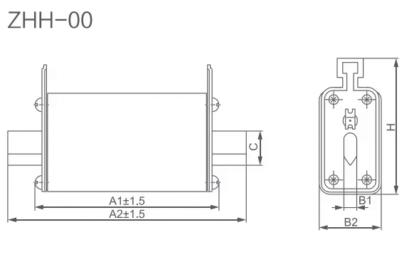 ຕົວແບບ ຂະໜາດ(ມມ) A1 A2 B1 B2 C H ZH-00 56 79.5 6 30 15 59