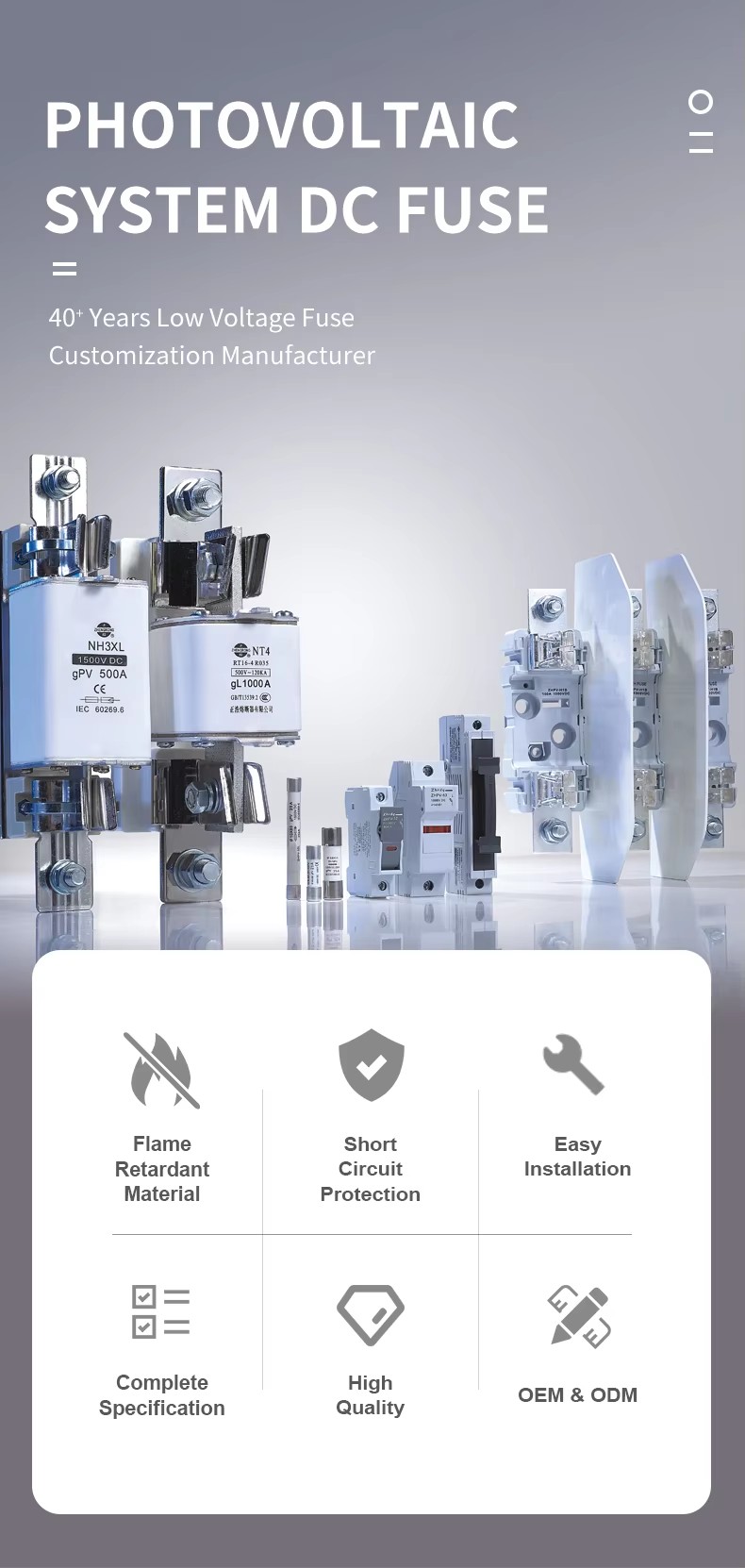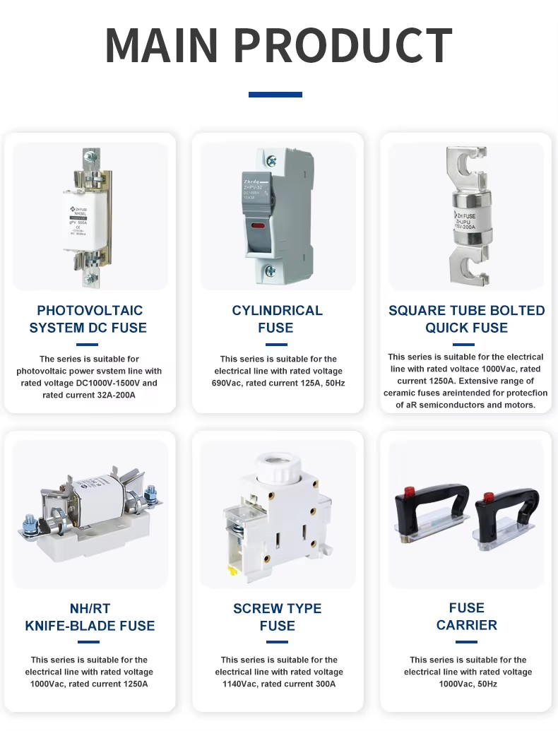 ຂະຫນາດ Zhpv-125 1000v DC FUSE ແມ່ນໃຊ້ໂດຍທົ່ວໄປສໍາລັບການປົກປ້ອງວົງຈອນໃນການສະຫມັກອຸດສາຫະກໍາແລະການຄ້າ.